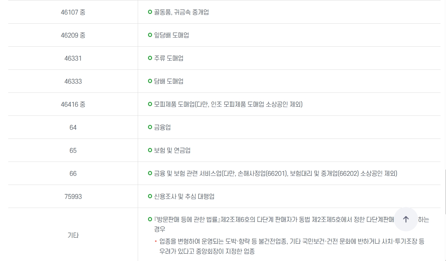 유흥, 사행성, 사치 업종 등 보증 제한 업종