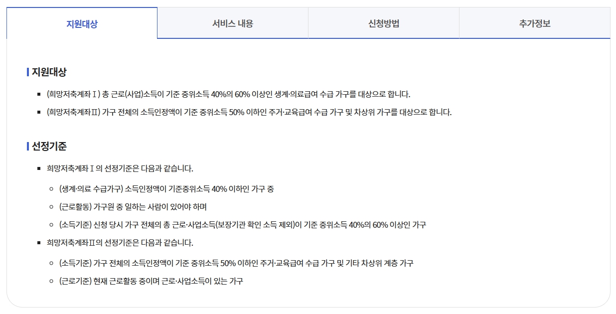 → 희망저축계좌1, 청년내일저축계좌 등 중복 신청 불가합니다.